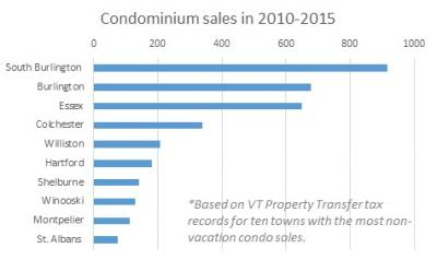 Although most non-vacation condominiums sold each year in Vermont are near Burlington, several towns in other parts of the state also play an important role in this segment of the housing market. About 80 percent of all primary residence condo sales in Vermont each year take place in 10 towns--7 inside Chittenden County and 3 beyond its boundaries.