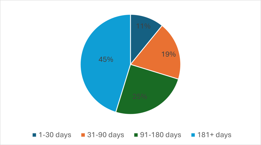 Figure 1‑2 Vermont homes used for short-term rental by number of days listed, Sept. 2024-2025