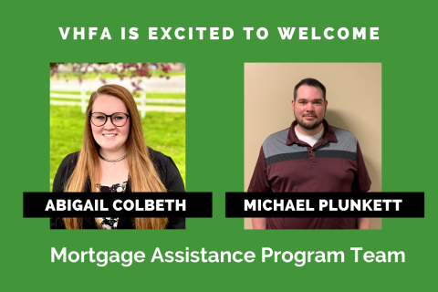Executive Director Maura Collins announced that Vermont Housing Finance Agency (VHFA) has selected Abigail Colbeth (she/her) of Williston and Michael Plunkett (he/him) of Fairfax to join its Mortgage Assistance Program (MAP) team.
